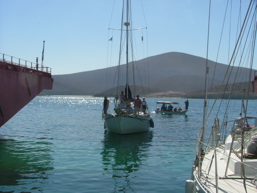 We anchored in the center of the small cove. Chaitanya followed us and is just barely visible on the far left, anchored with a stern line taken ashore.