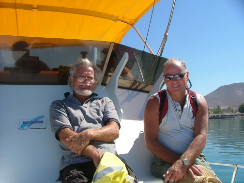 On the left is John of the sailing yacht, Pelican. John is a longtime Mexico cruiser now based out of La Paz. He was one of our daily companions at the Fiesta Inn's pool. He had volunteered as crew aboard Amistad. He was also kind enough to give us a ride from La Paz to the airport in his van.