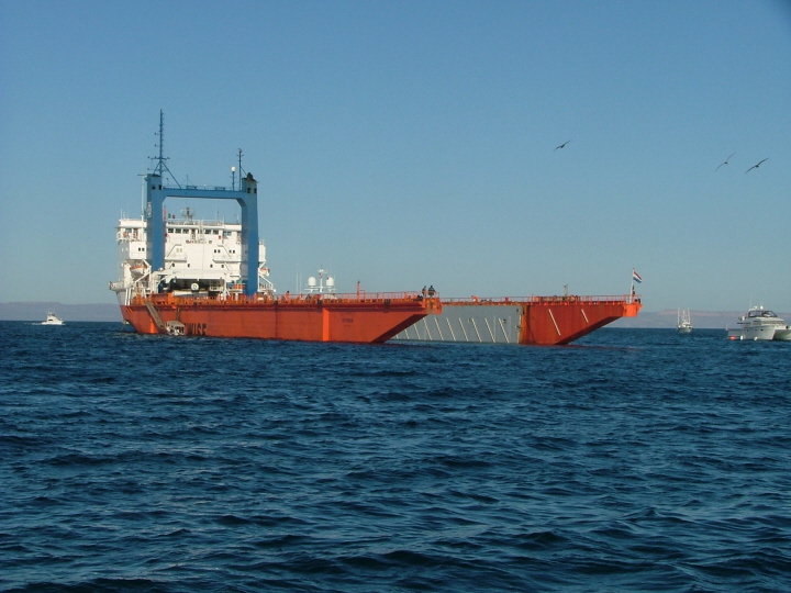 On the morning of May 31, Kavenga's ship the Dockwise Express 12 was waiting at anchor three miles north of the entrance to La Paz Harbor.