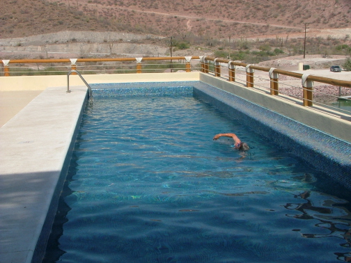 And here's the other pool at the Fiesta, a lap pool, with Kay in the midst of doing her daily laps. We typically came here to do our laps first, especially if the infinity pool was the tiniest bit crowded.